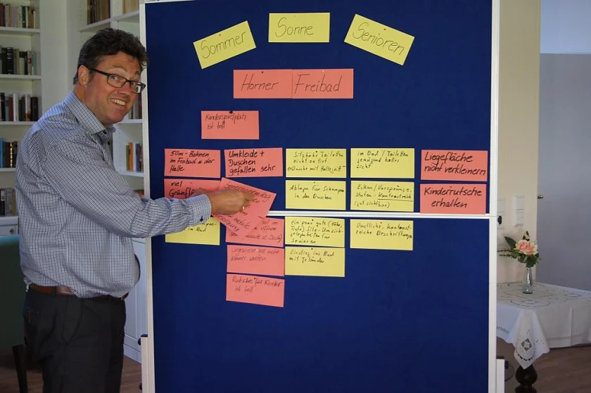 „Mit dem Äußern der Meinung ist es nicht getan. Es ist wichtig, dass die Menschen Ihre Ideen bei den Workshops und am Tag des Votums einbringen und dann mit anderen zusammen entscheiden, wie das Votum zum neuen Bad aussehen soll “ meint Heike Blanck, die gemeinsam mit Jürgen Brodbeck den Beteiligungsprozess moderiert.