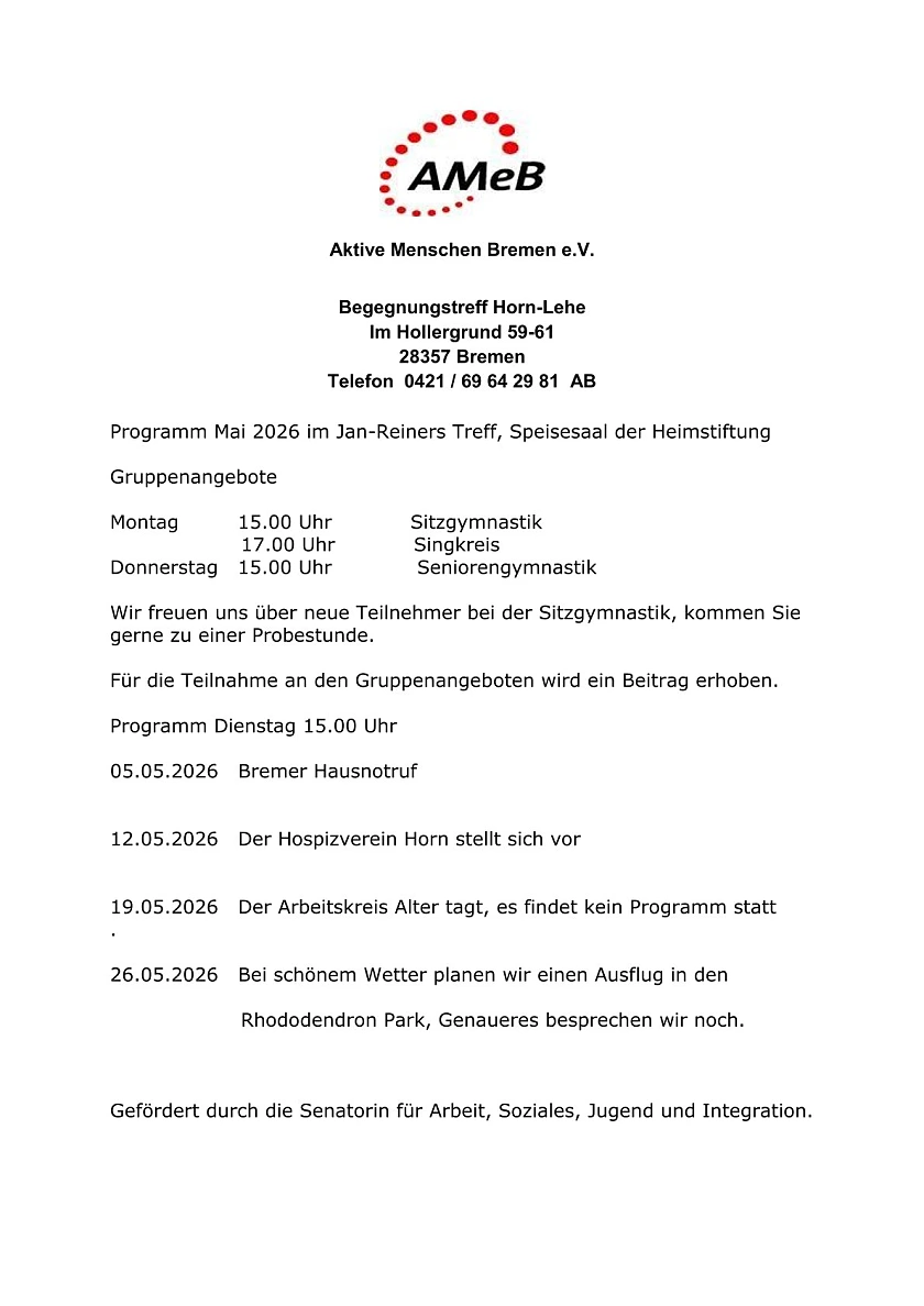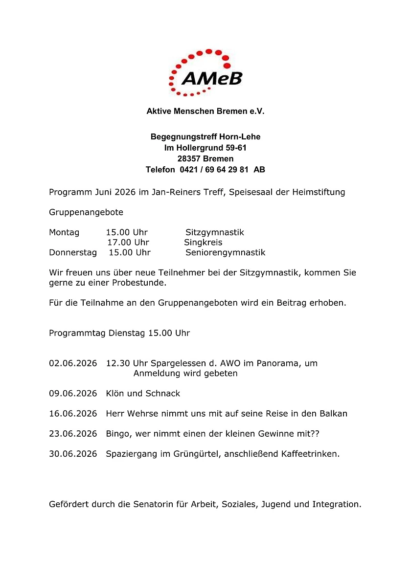 An dieser Stelle präsentieren wir aktuelle Veranstaltungen und Angebote aus den Institutionen des Stadtteils Horn-Lehe und interessante Angebote aus der Region.